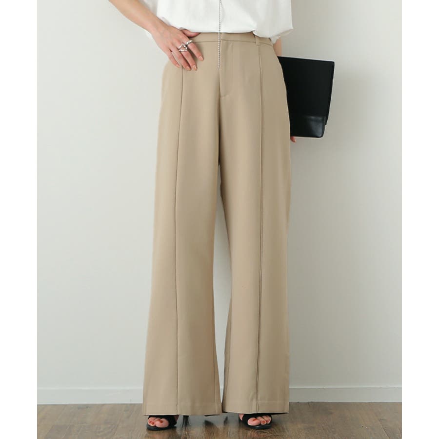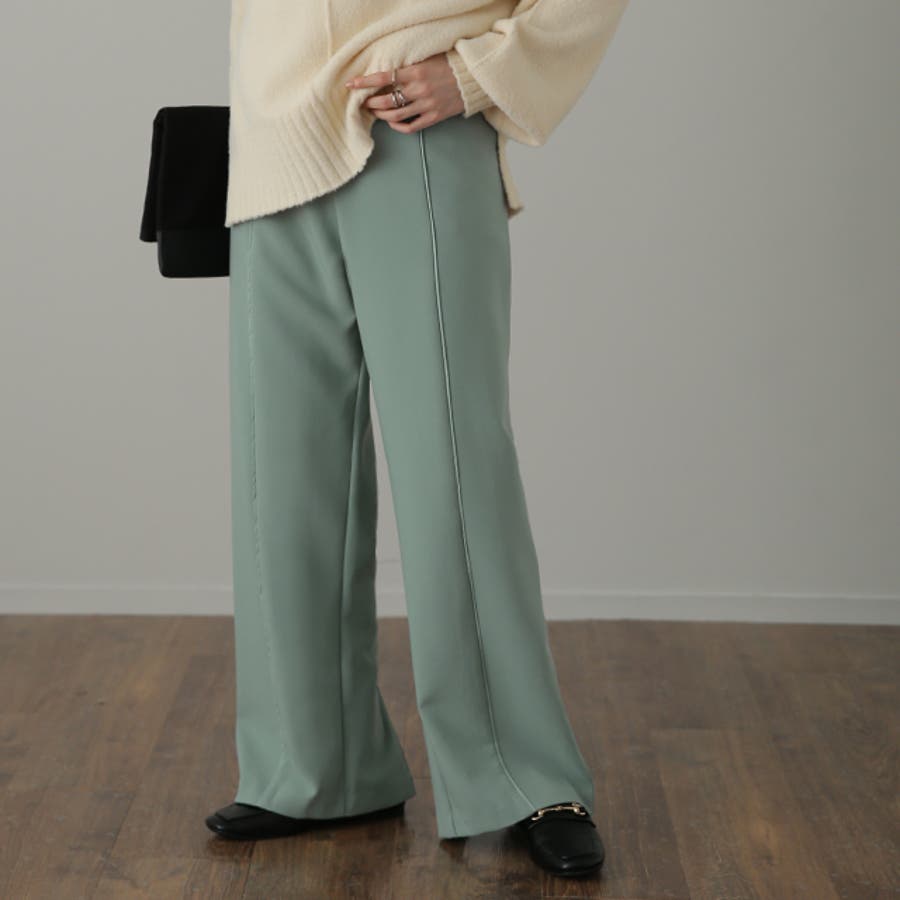 こなれ感を演出するセンターライン入りイージーパンツ。