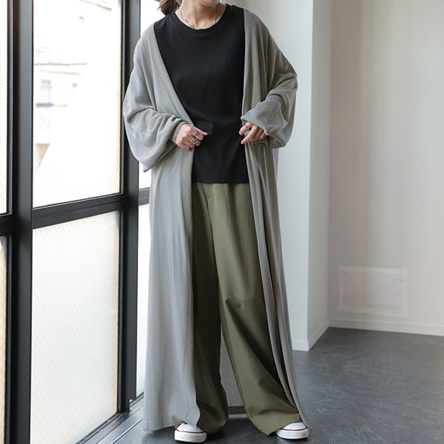 すっきりと縦ラインを強調する前開きデザインのロングカーディガンです。