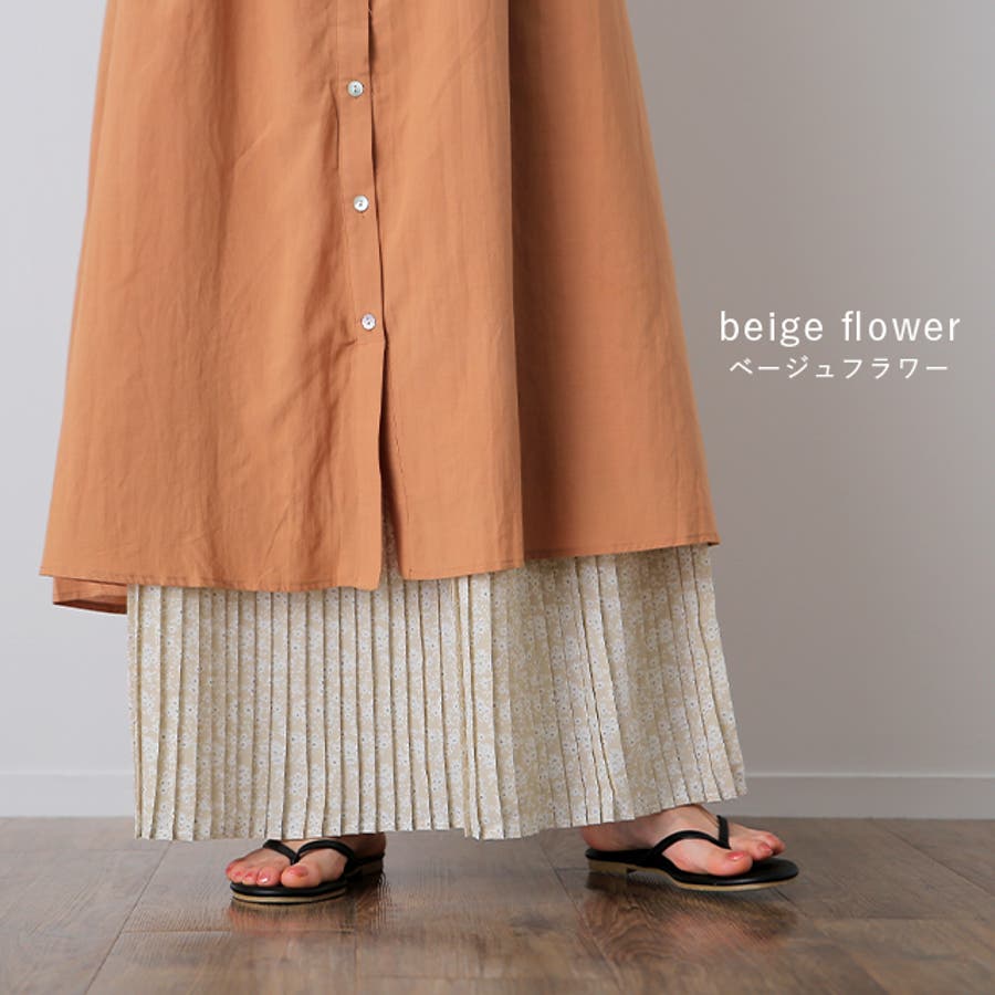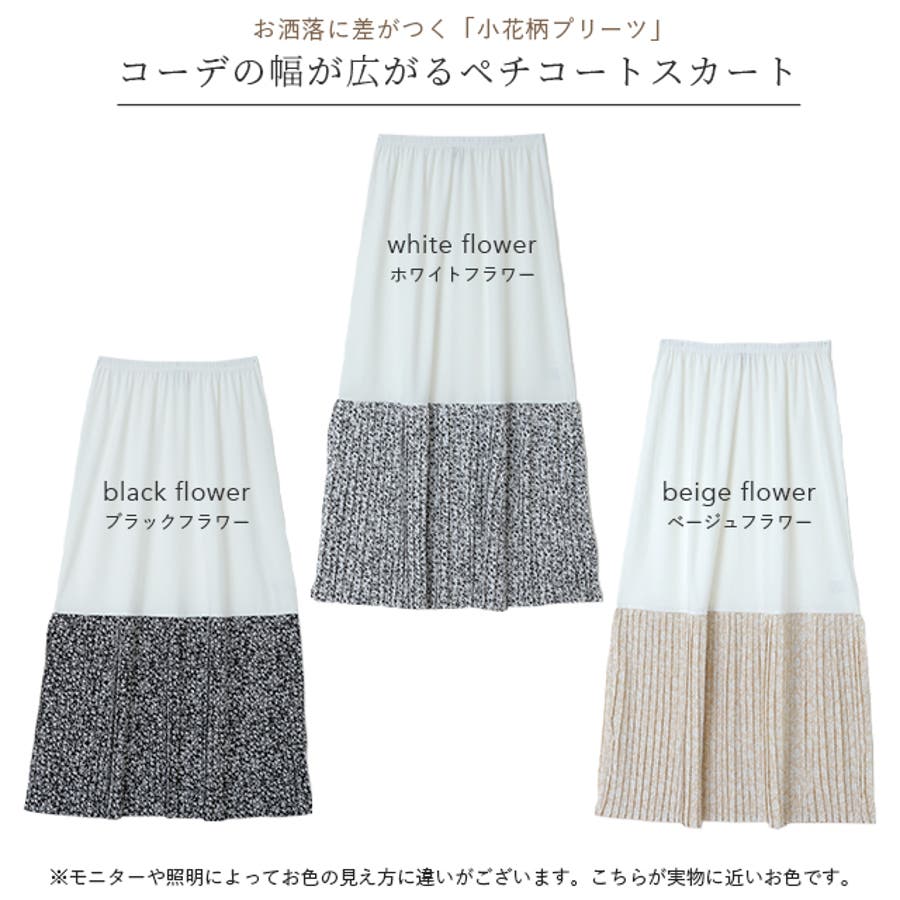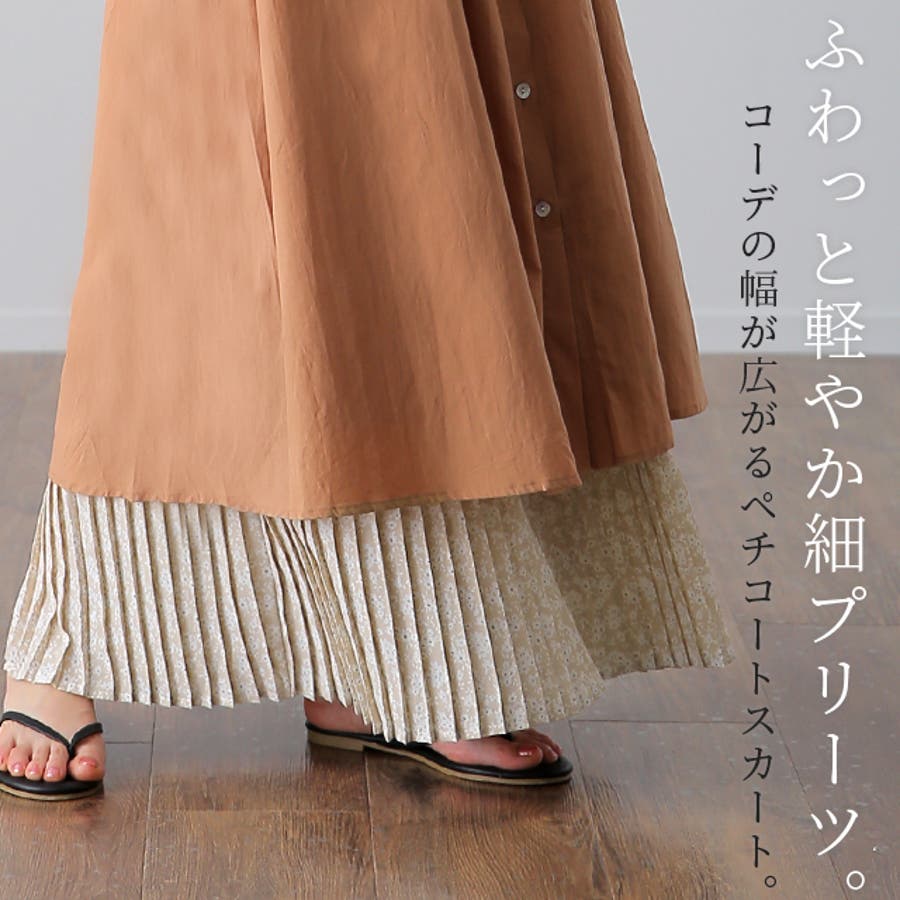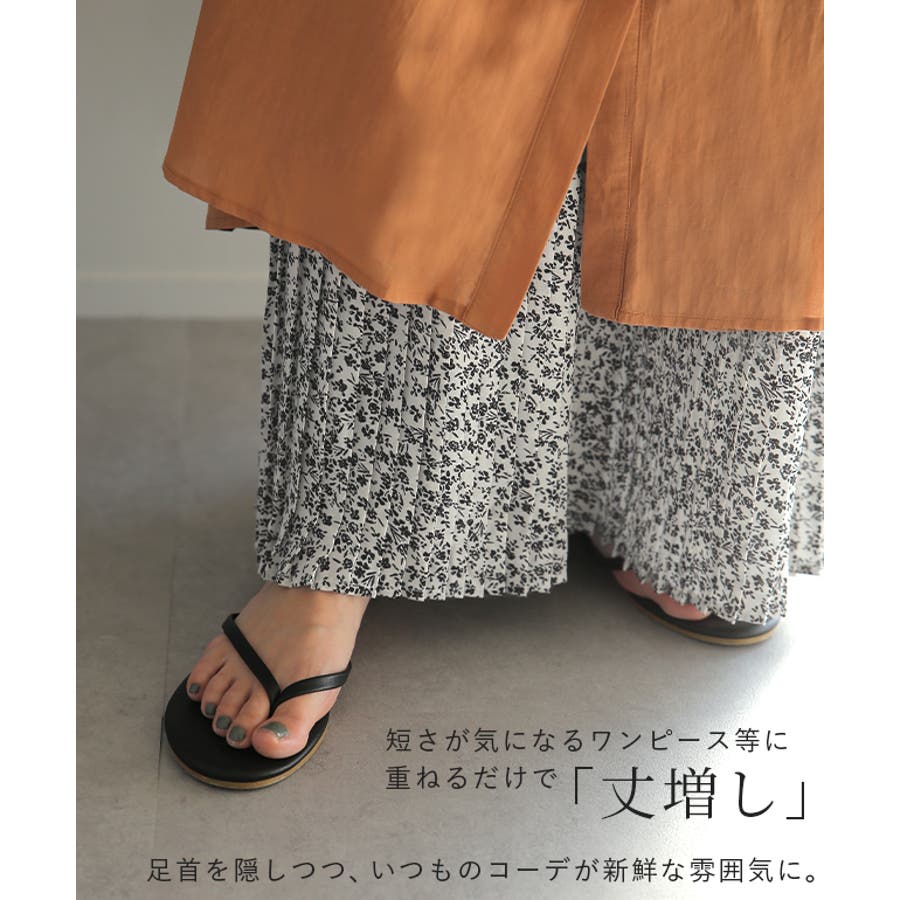 スカート レイヤード ペチコート プリーツ 小花柄 ロングスカート インナー