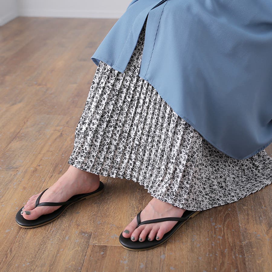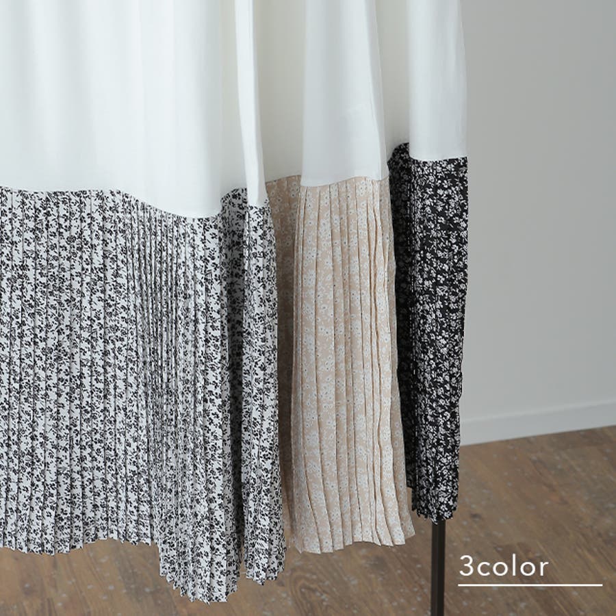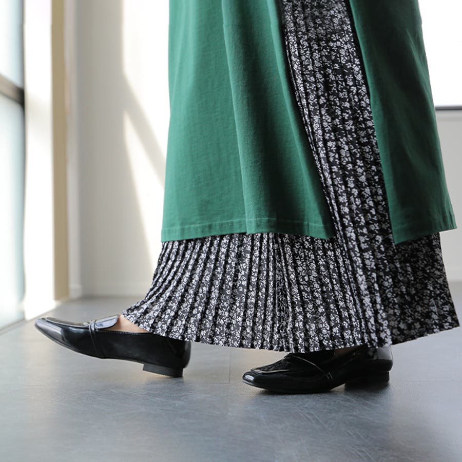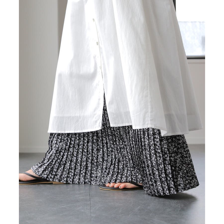 スカート レイヤード ペチコート プリーツ 小花柄 ロングスカート インナー