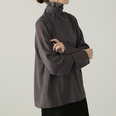 前で結んで上品に後ろで結べばバックシャンのハイネックブラウスとしても活躍します。