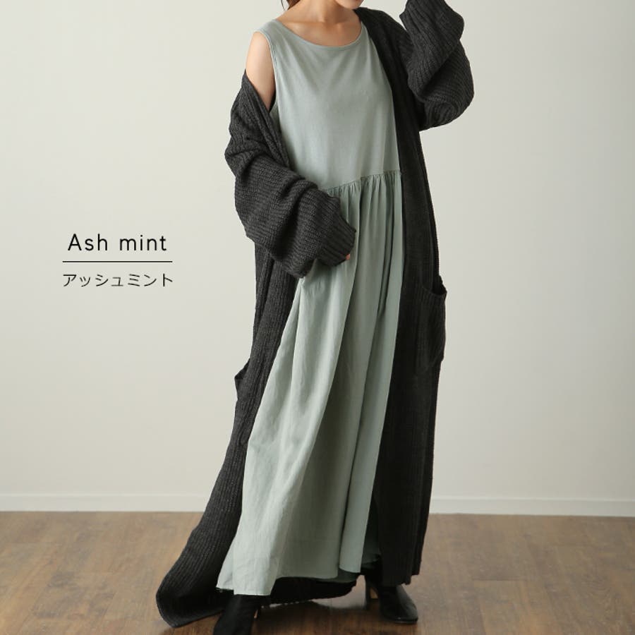 【アッシュミント(Uネック)】ワンピース 綿100% ロング ペチコート ペチワンピ レイヤード 重ね着 イ