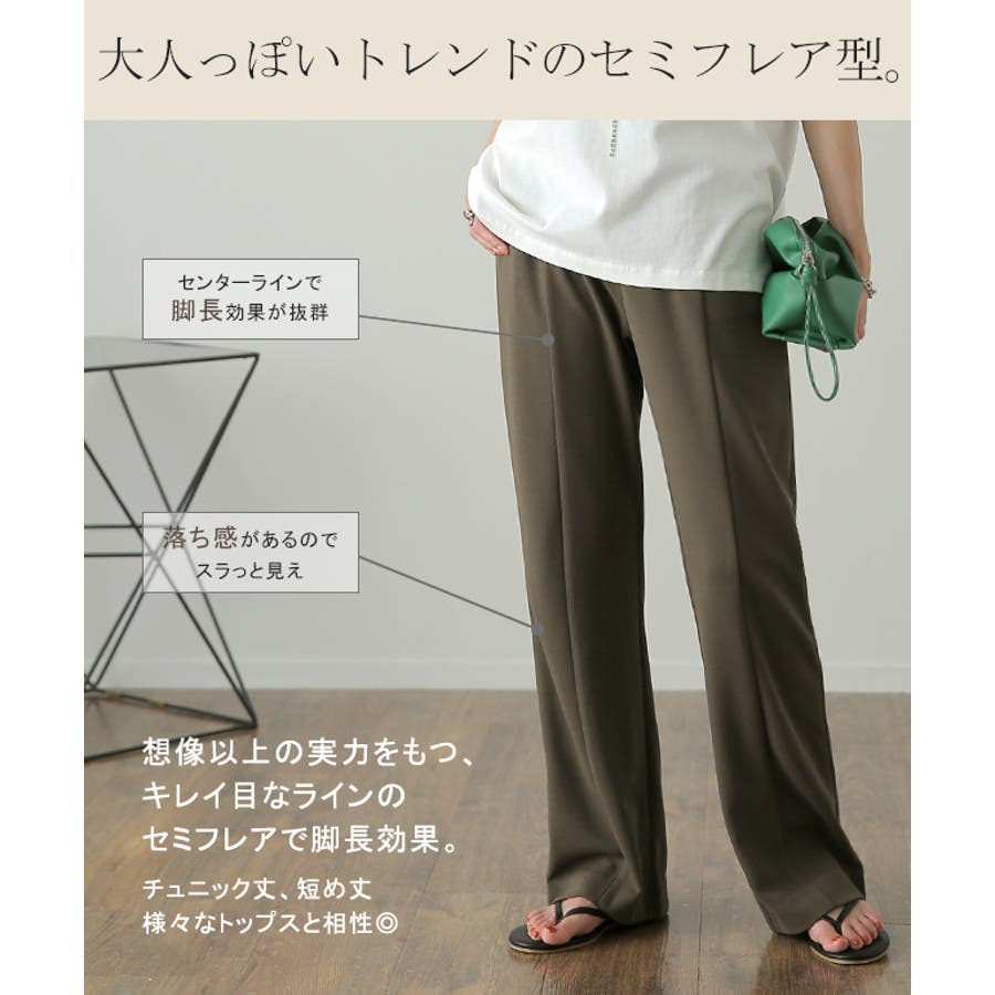 正面に線が入っているので、緩めなのに細見えします。さん (40代 / 女性 / 身長155~160cm / 体重55~59kg)購入アイテム:カラー ピスタチオサイズ トール丈いつものボトムスサイズ:Lサイズ感:ぴったり - よく伸びます