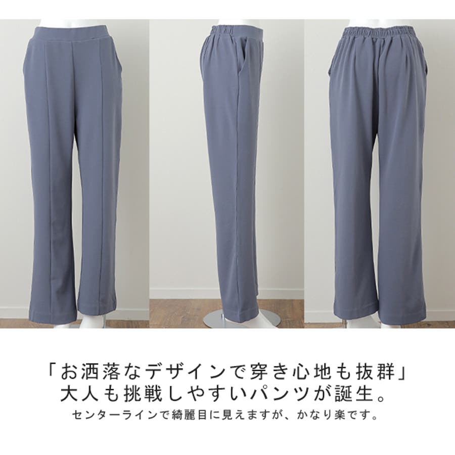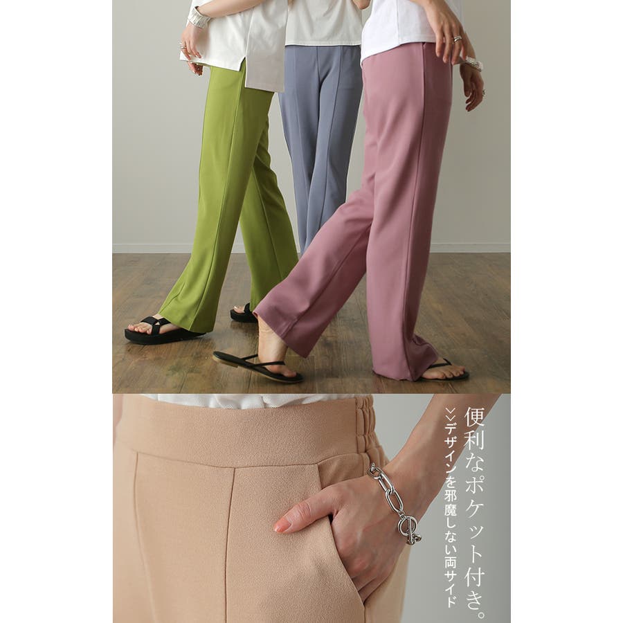パンツ レディース ワイドパンツ ロング フレアパンツ センターライン ゴム