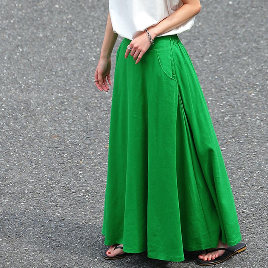 スカート ロングスカート レディース カラー 麻 マキシ 無地 マキシスカート