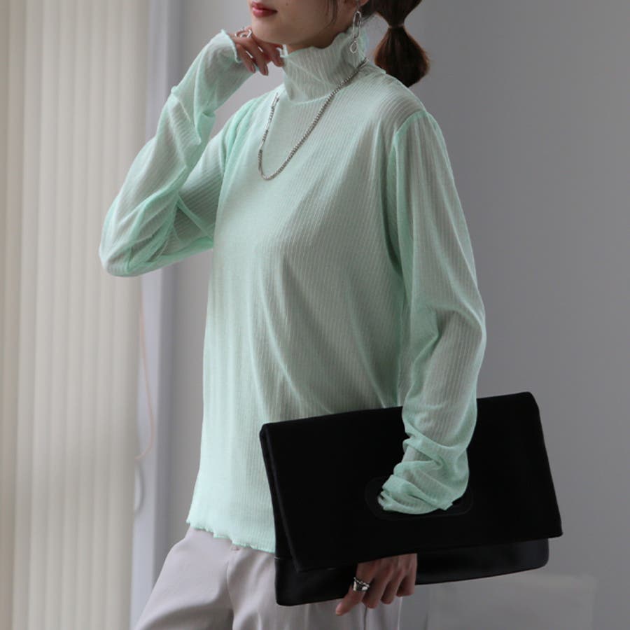 トップス レディース シアー インナー レイヤード 薄手 透け ハイネック 長