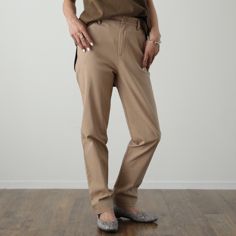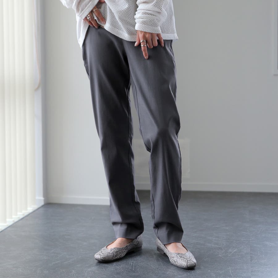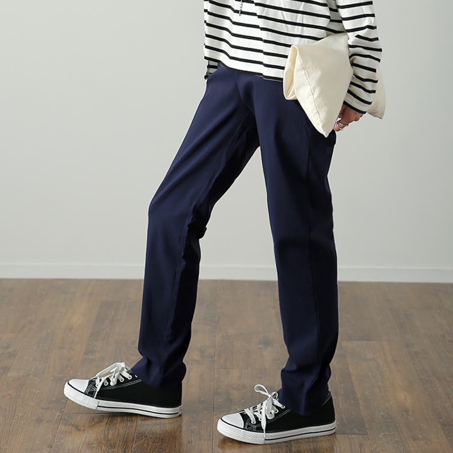 伸縮性抜群でラクな穿き心地のストレートパンツです。