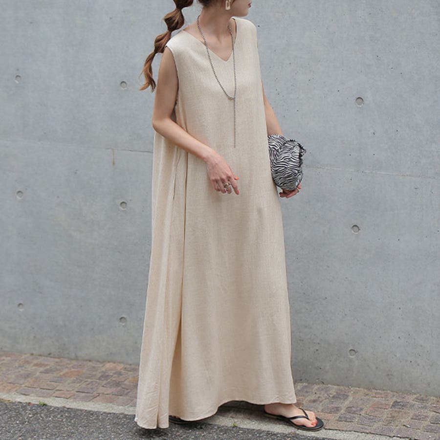 【オートミール】ワンピース レディース 麻 綿 ワンピ マキシ ロング ロングワンピース ノー