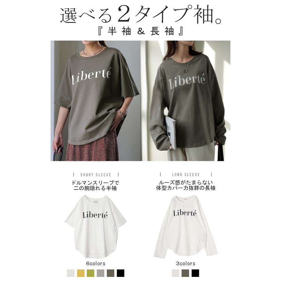 Tシャツ レディース トップス ロゴT 半袖 ドルマン 二の腕カバーきれいめ