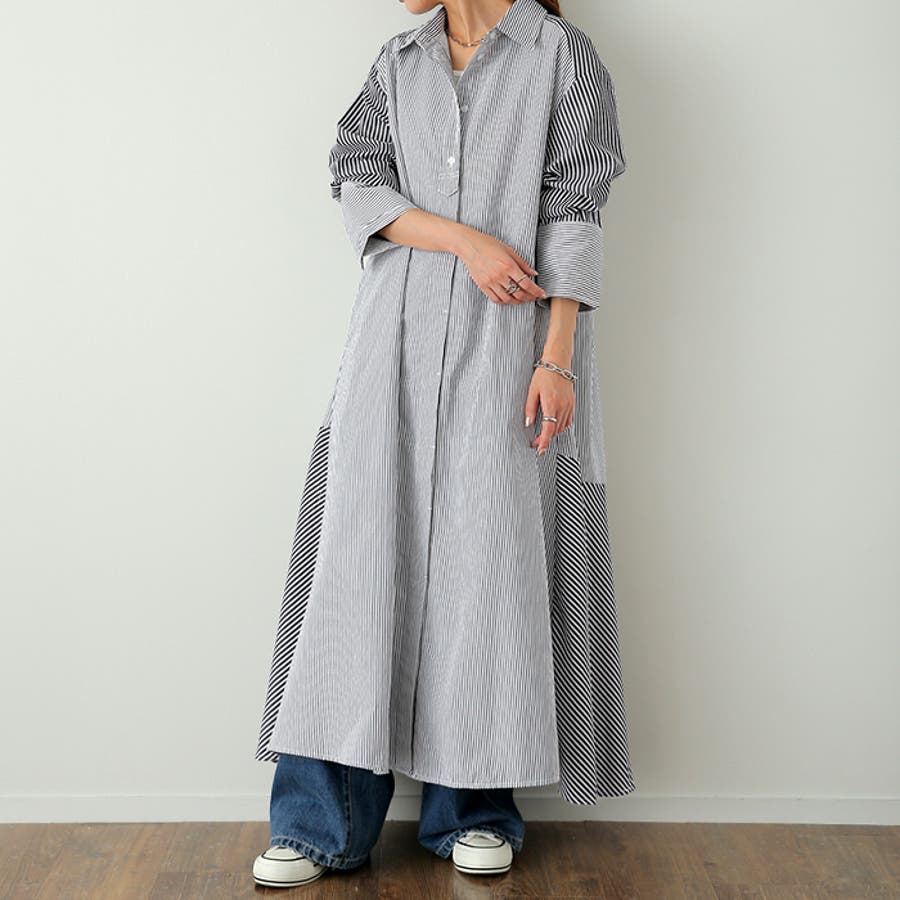 トレンドレスなストライプのシャツワンピースです。