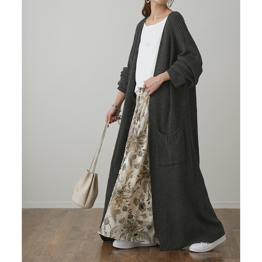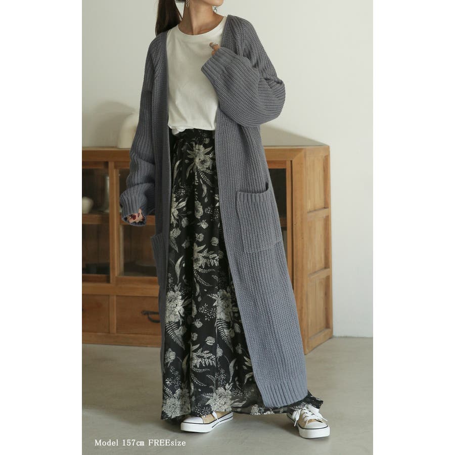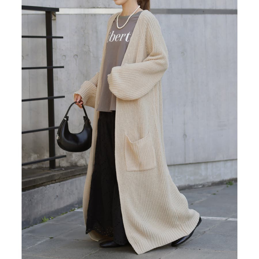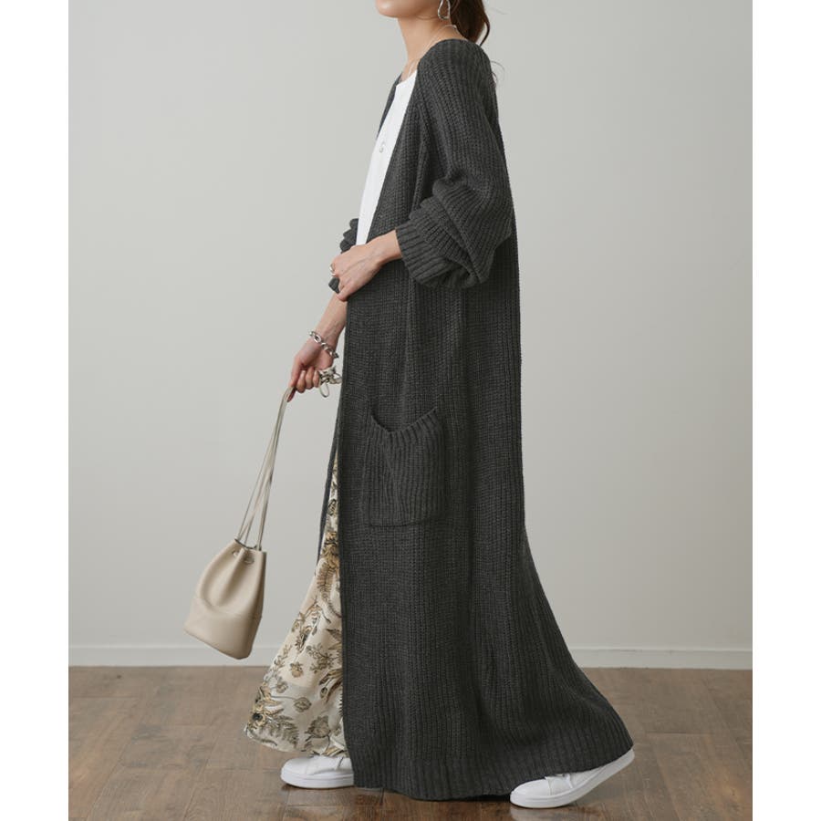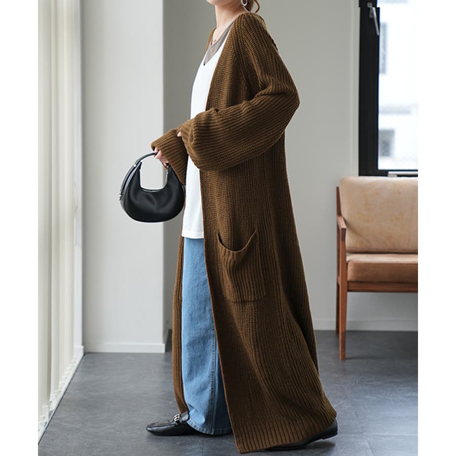 トレンドビッグシルエットのロング丈ニットカーディガン。