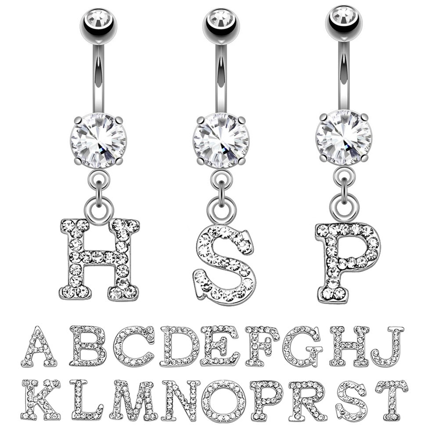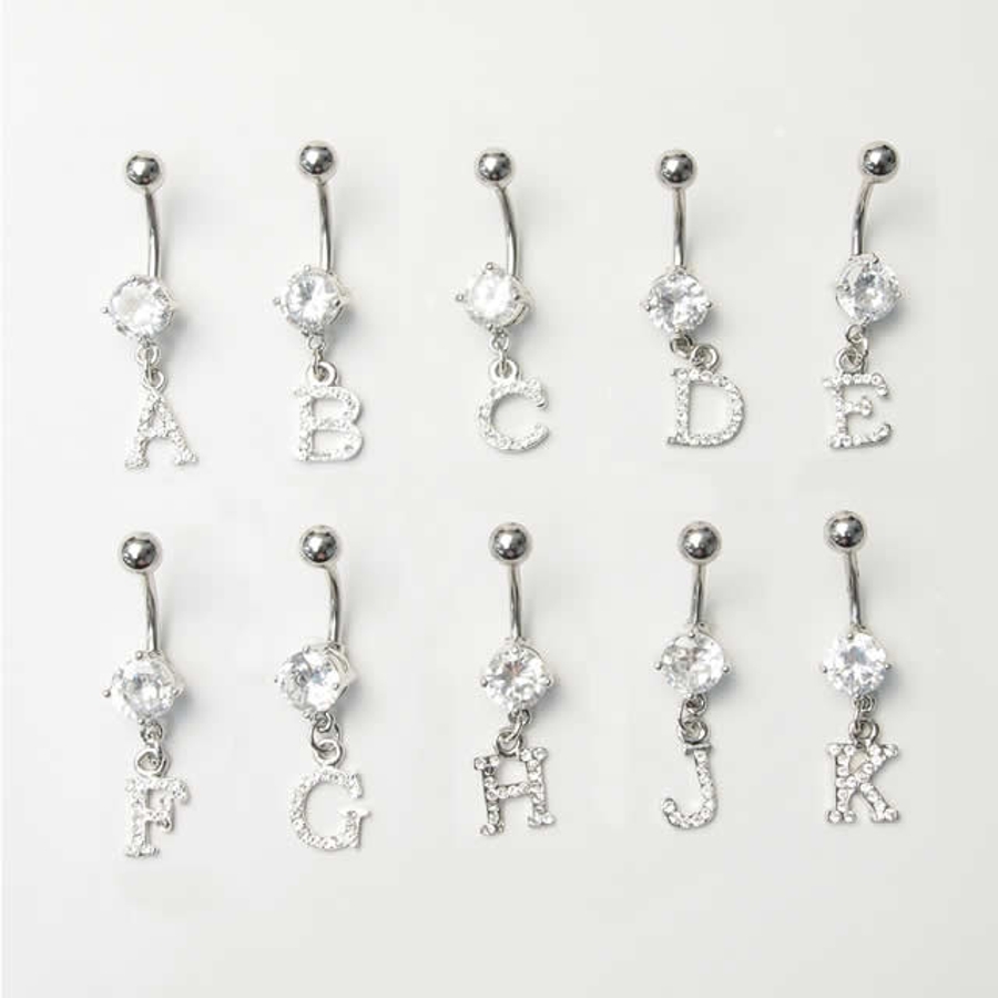 人気のイニシャルロゴにパヴェジュエルが付いて上品に煌めくヘソピアス(バナナバーベル)。
