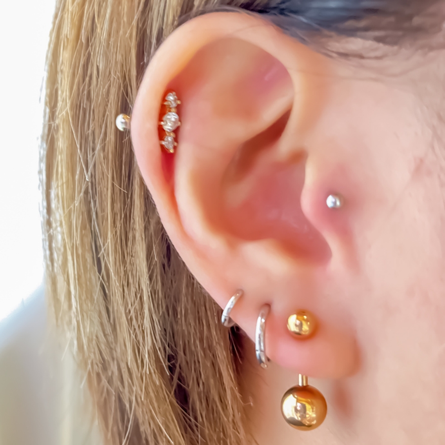 おへそはもちろん、耳たぶや軟骨、眉など、様々な部位にお使いいただけます。