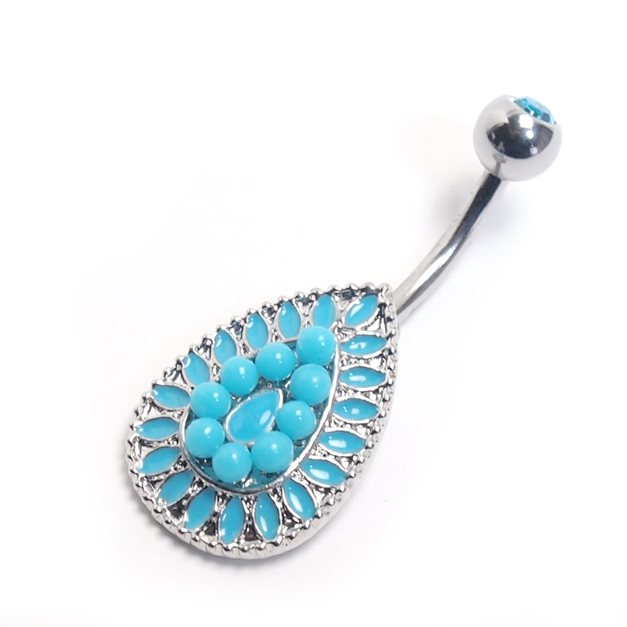 ティアドロップモチーフが大人可愛いヘソピアス(バナナバーベル)。