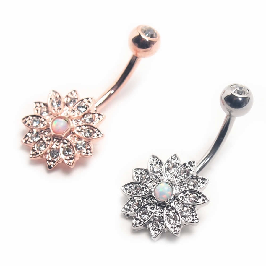 上品なフラワー(花)モチーフがお洒落なヘソピアス(バナナバーベル)。