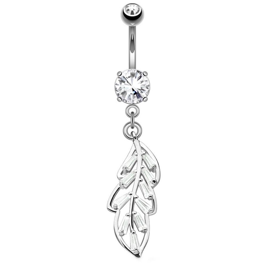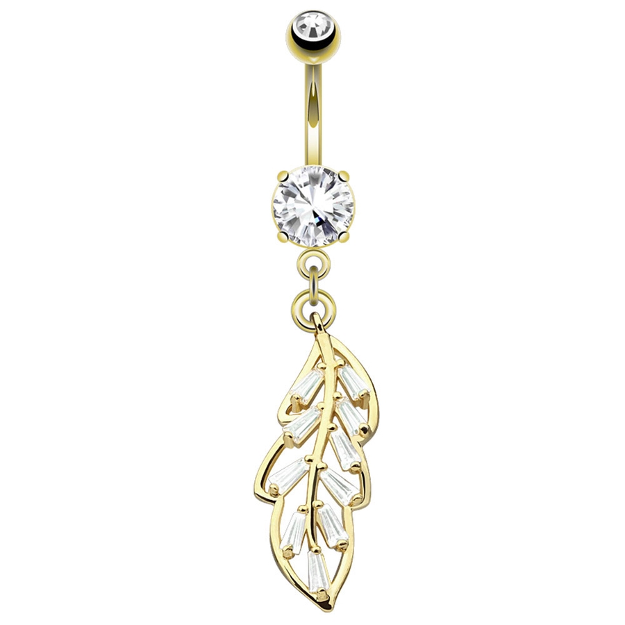 リーフモチーフがお洒落で可愛いへそピアス(バナナバーベル)。