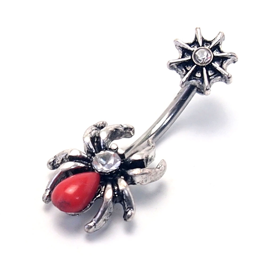 赤いお尻が印象的な蜘蛛のヘソピアス(バナナバーベル)です。
