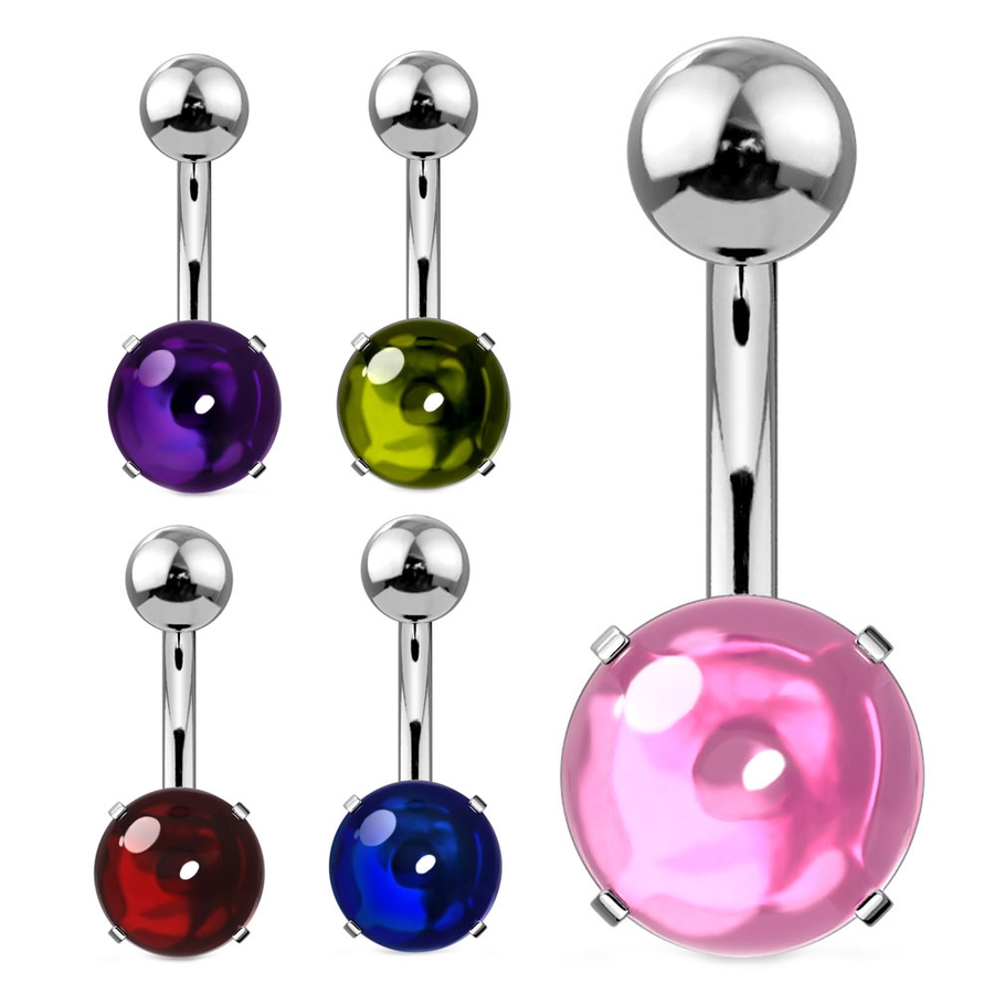 ヘソピアス ジルコン カボションストーン バナナバーベル 14G