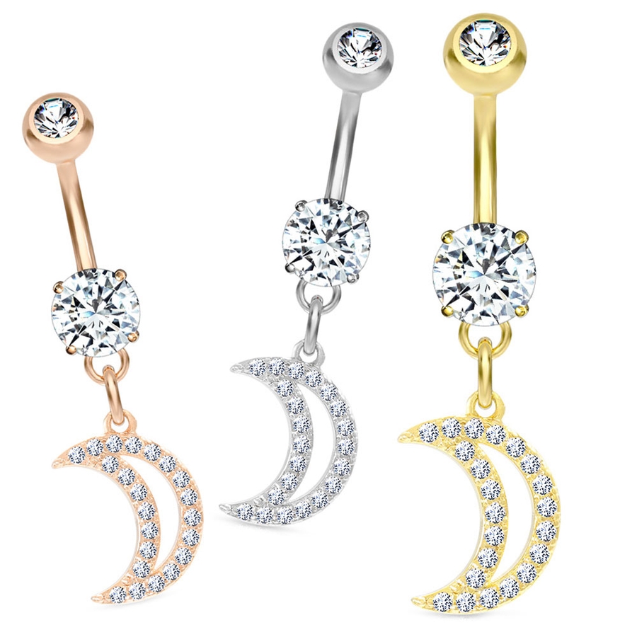 ヘソピアス CZパヴェ クレセントダングル バナナバーベル 三日月 14G