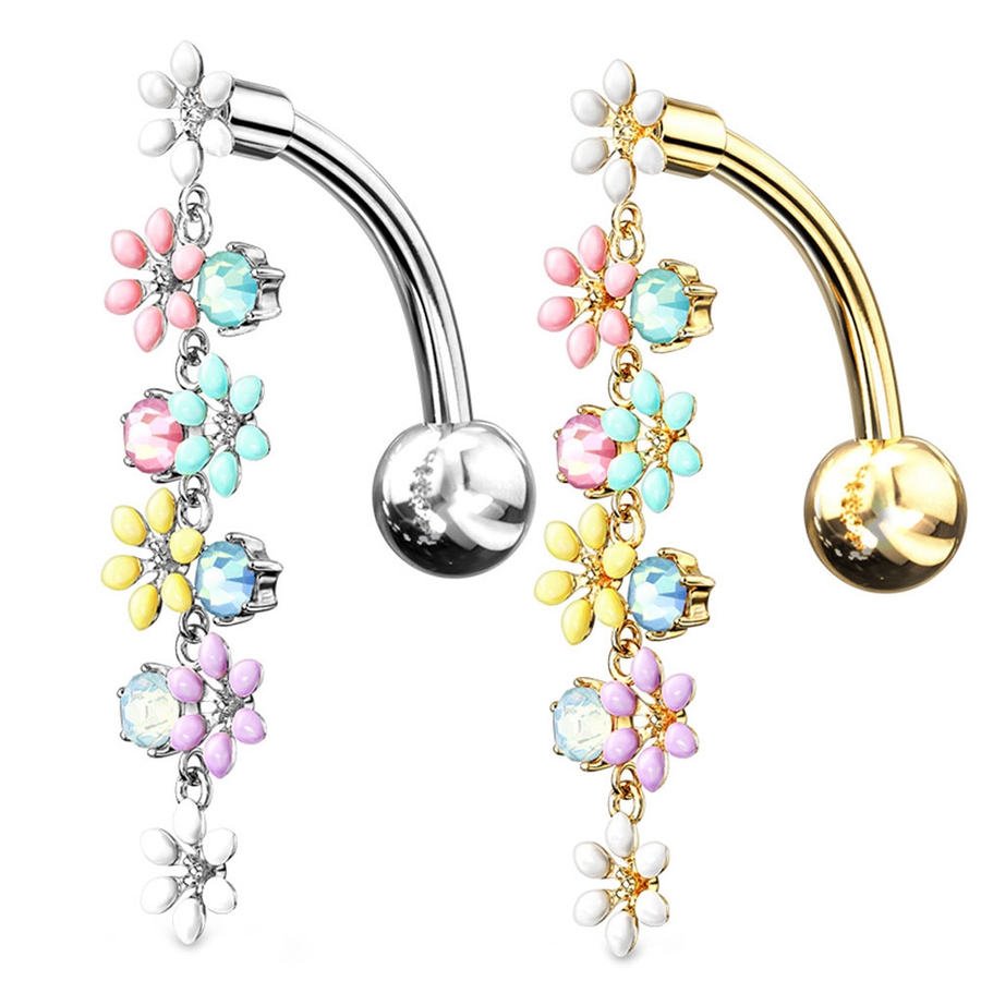 オパライトクリスタルストーン エナメルフラワー トップダウン バナナバーベル