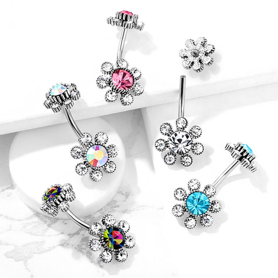 カラージェムフラワー アンティークシルバー インターナル バナナバーベル