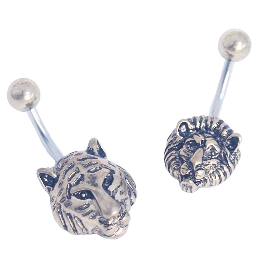 トラとライオンのチャームがクールで可愛いヘソピアス。