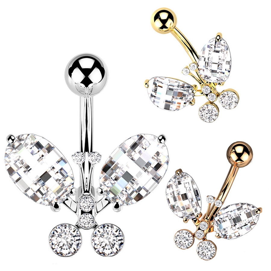 ヘソピアス 14G クリスタルバタフライ