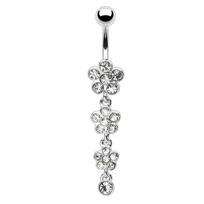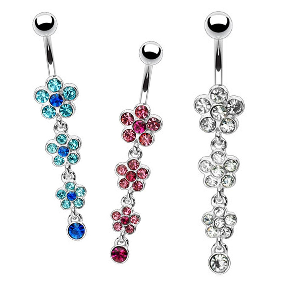 可愛いフラワーモチーフのチャーム付きヘソピアス。