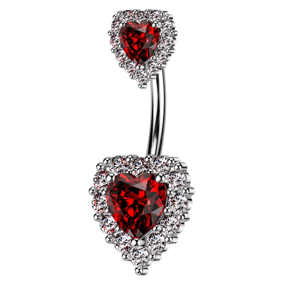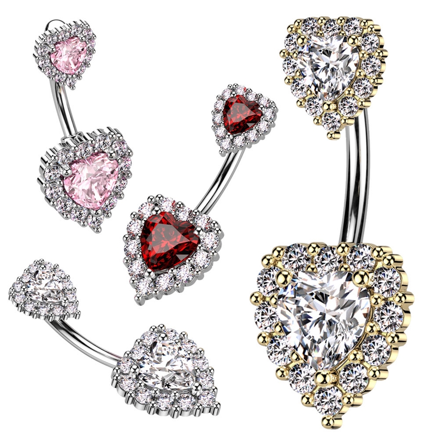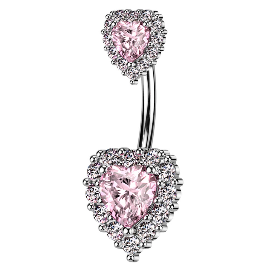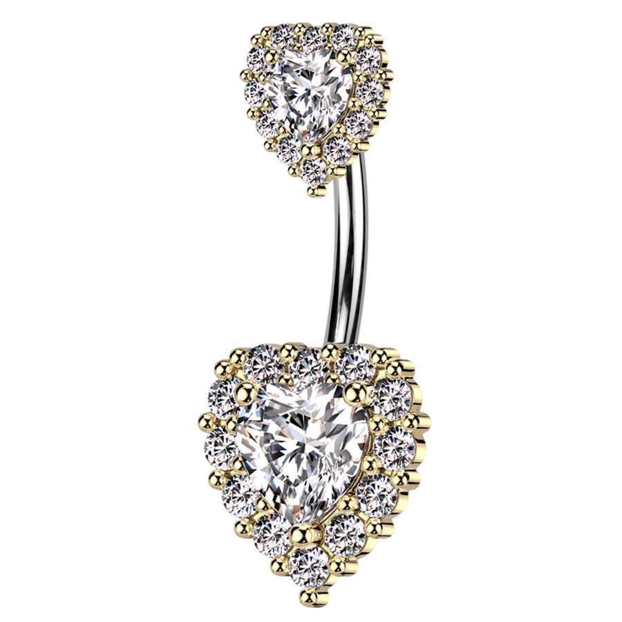 ゴージャス ダブル ハート ジュエル バナナバーベル 14G