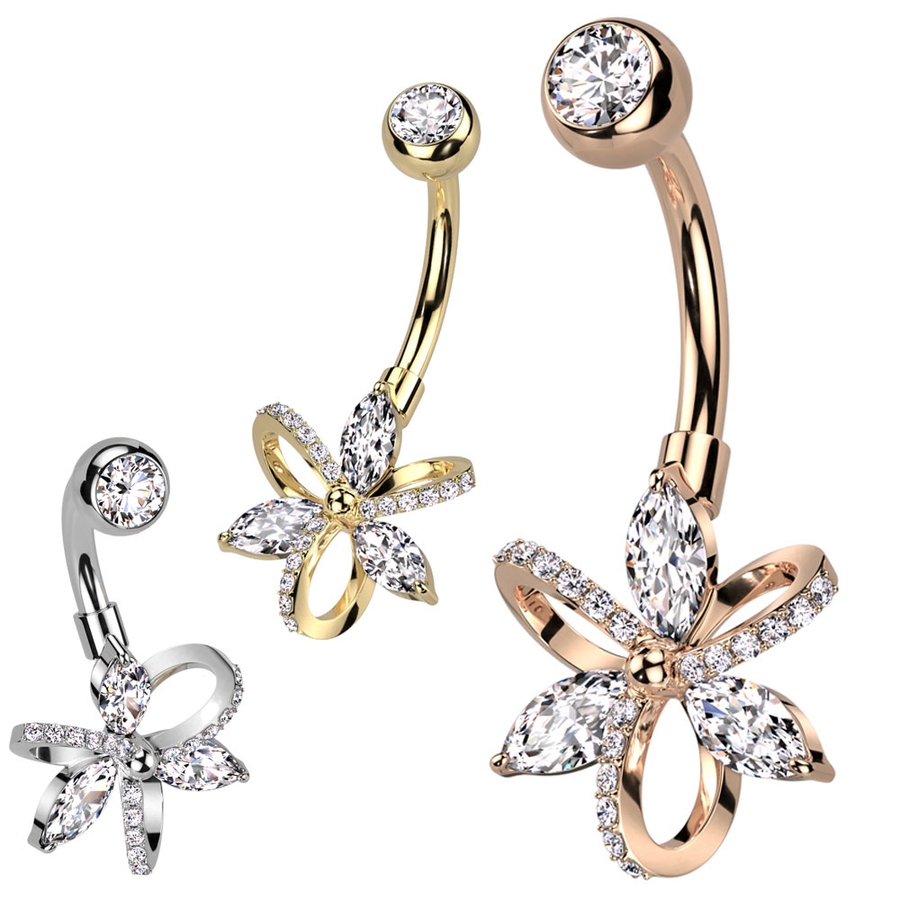 オシャレなお花のチャームが付いたへそピアス。