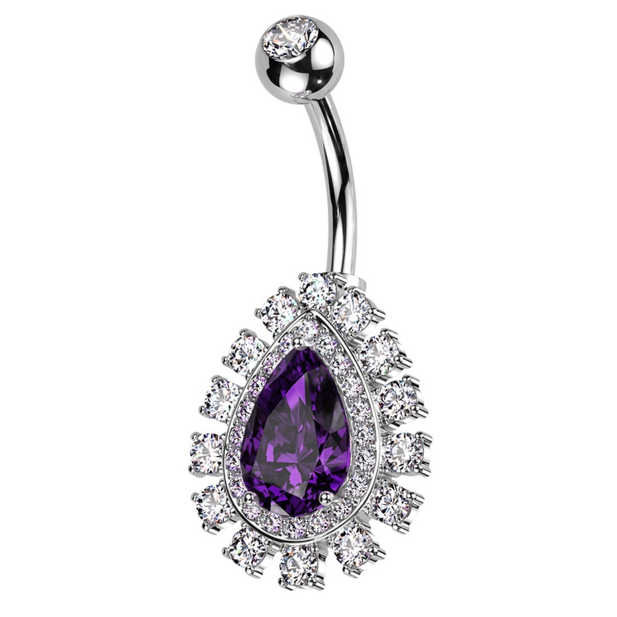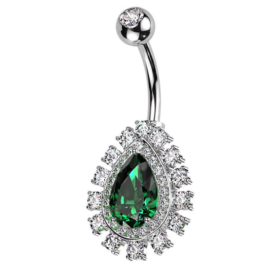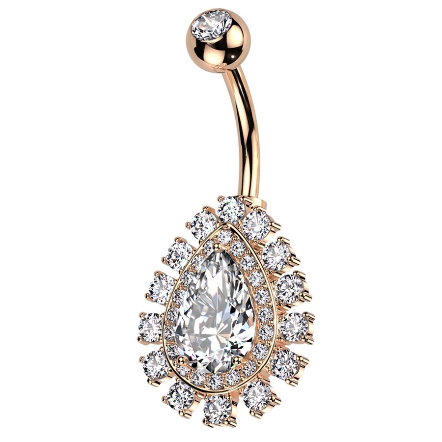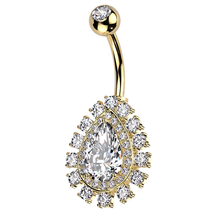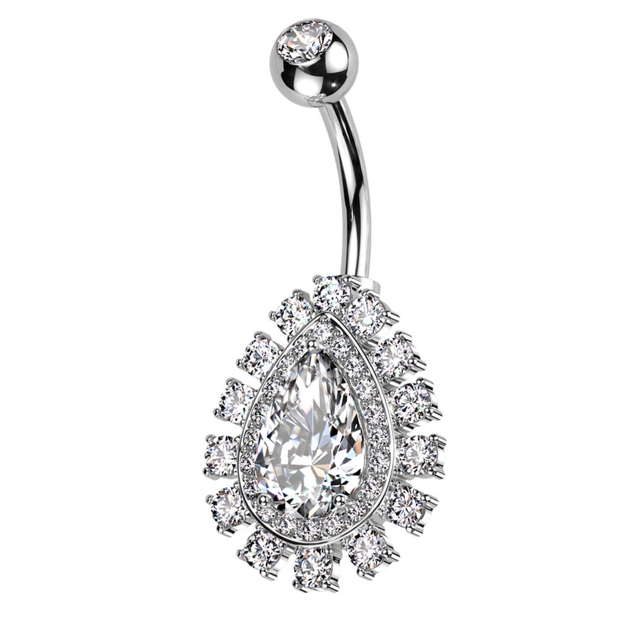 大きなティアドロップチャームが付いたへそピアス。