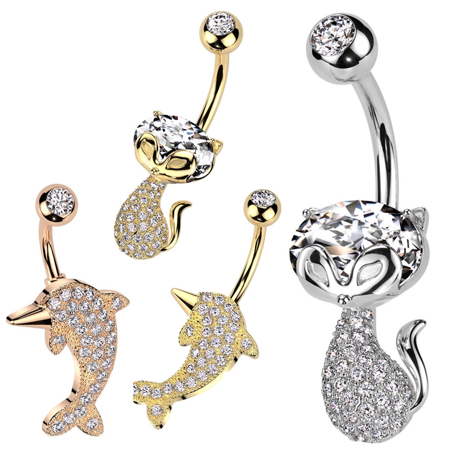 キャット ドルフィン ジュエル パヴェ CZ バナナバーベル 14G