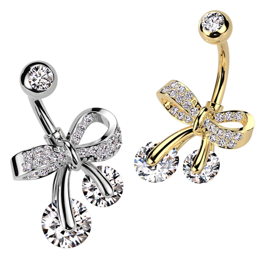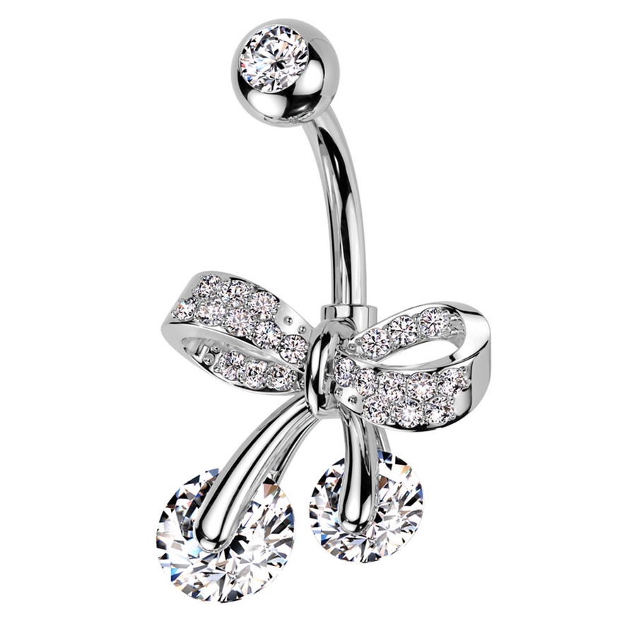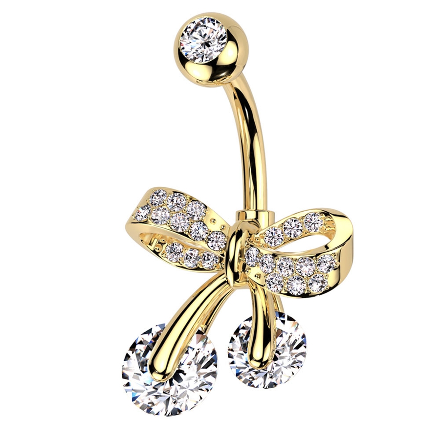 リボン ダブルジュエル CZ バナナバーベル 14G