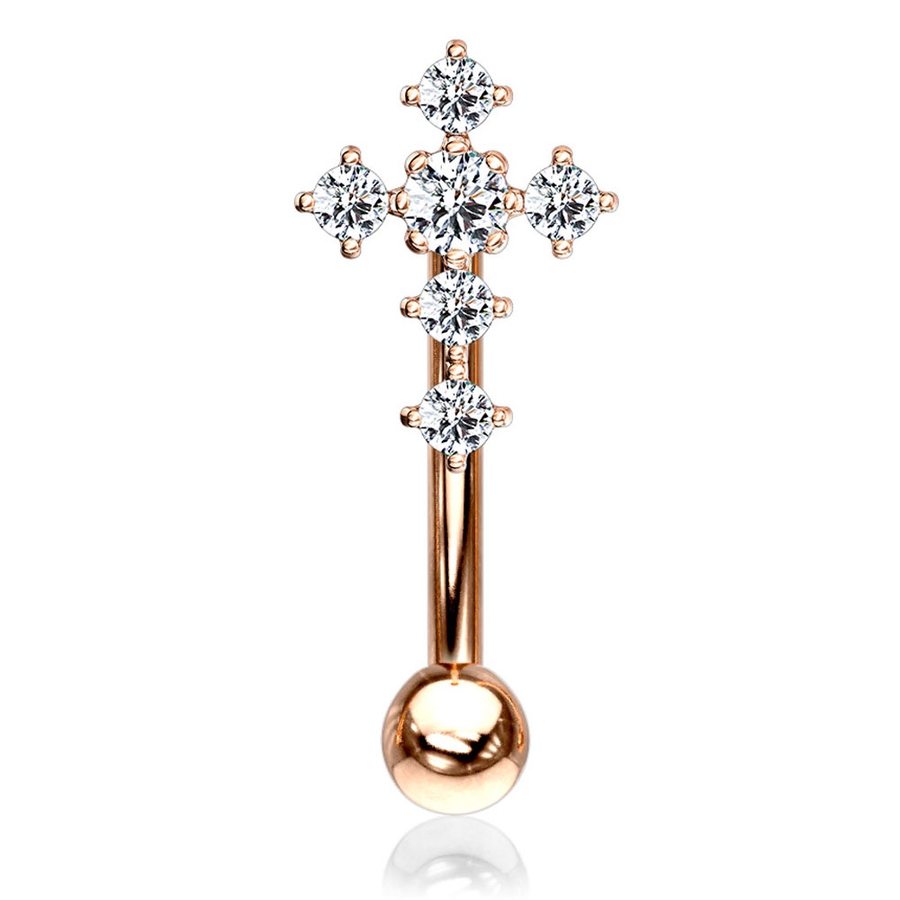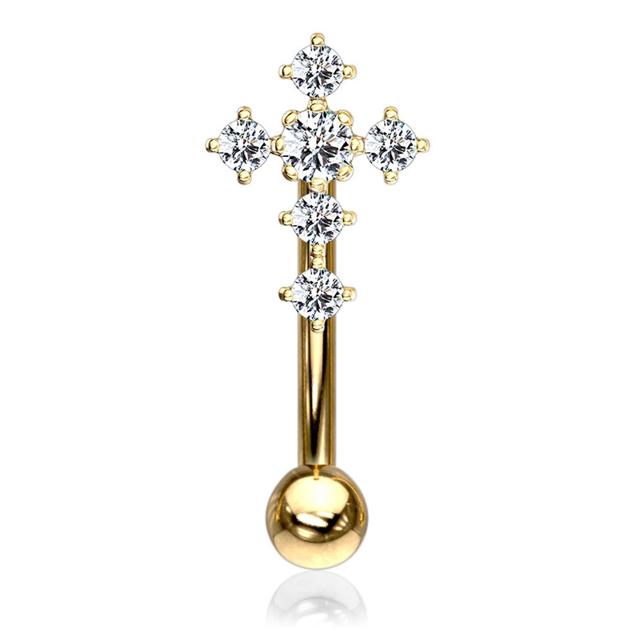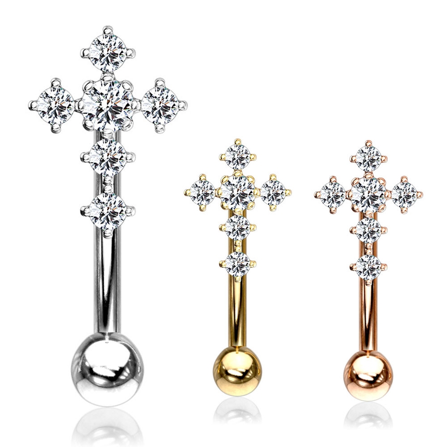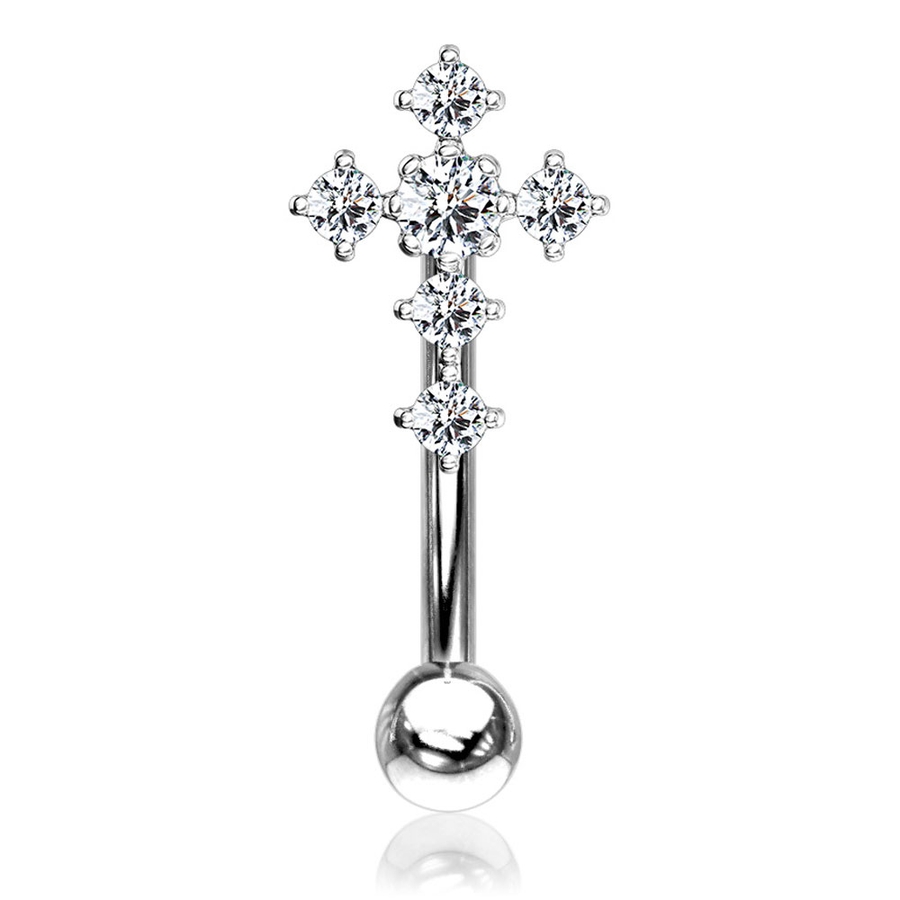 アイブロウ ジュエル パヴェ クロス バナナバーベル 16G
