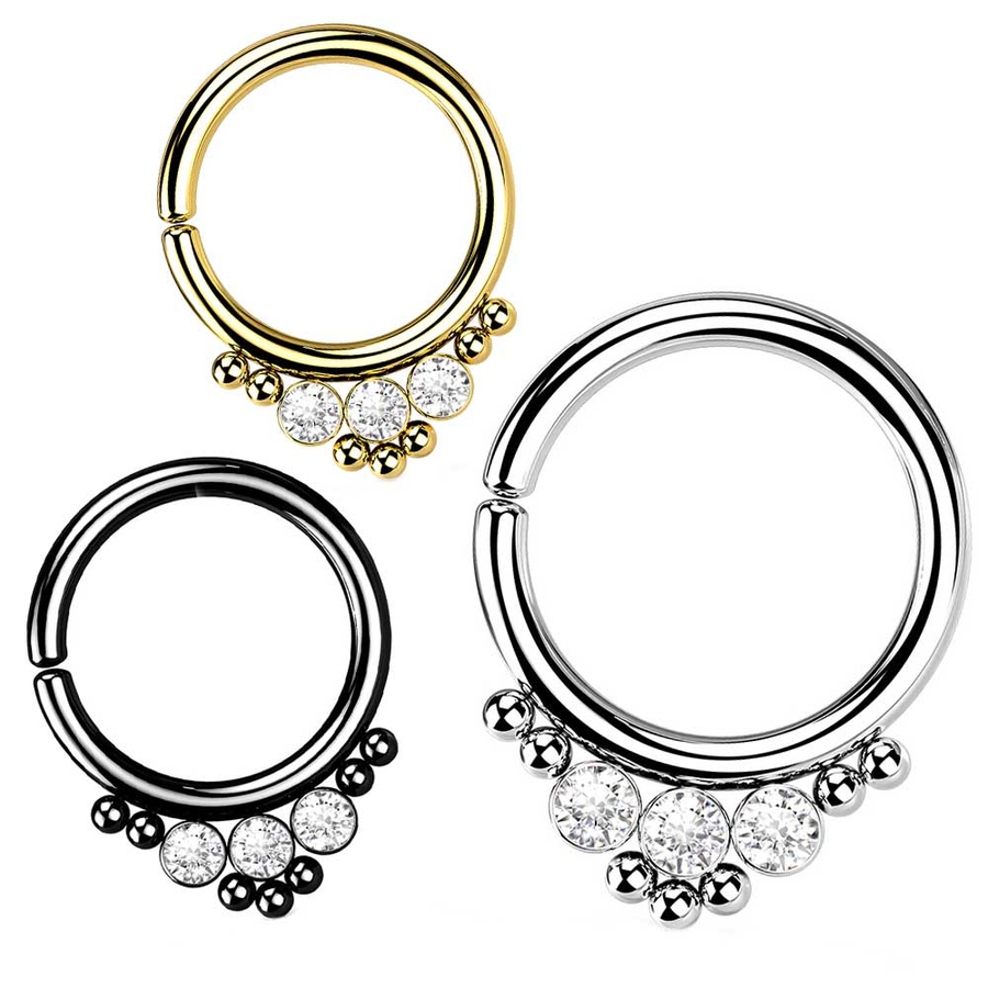 トリプルジュエル CZ ラウンド フラットボール クラスタービーズ ベンダブルフーププリング 16G 18G