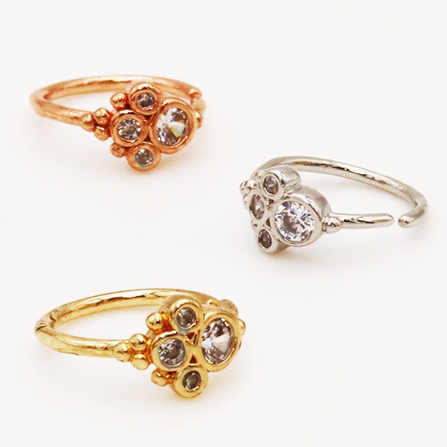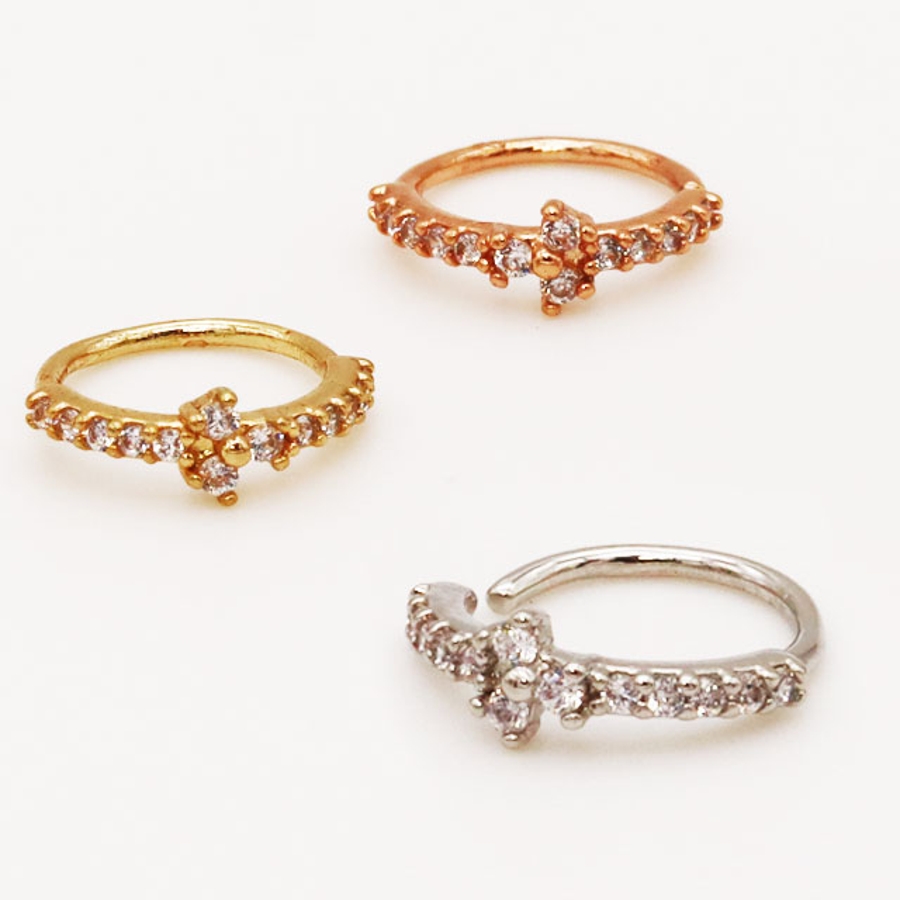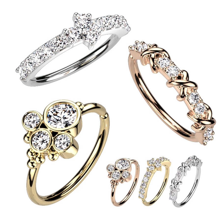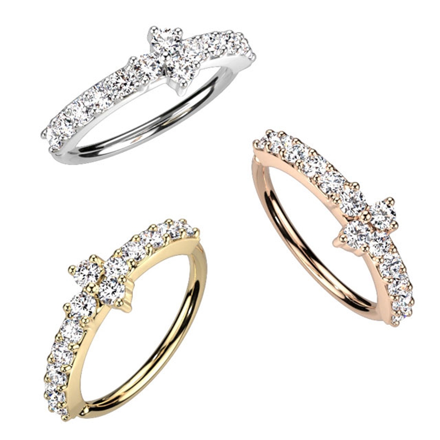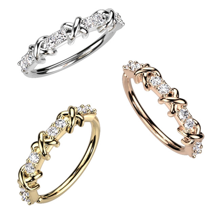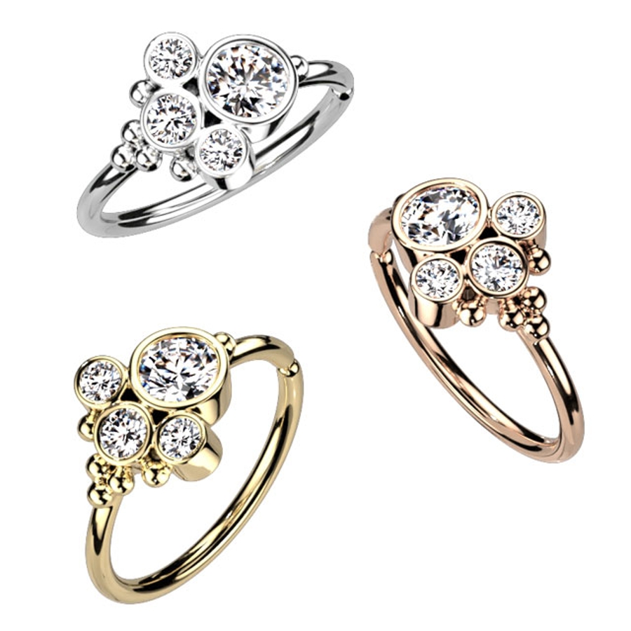 クリスクロス サイドジュエル ボールクラスター ベンダブルフープリング 20G