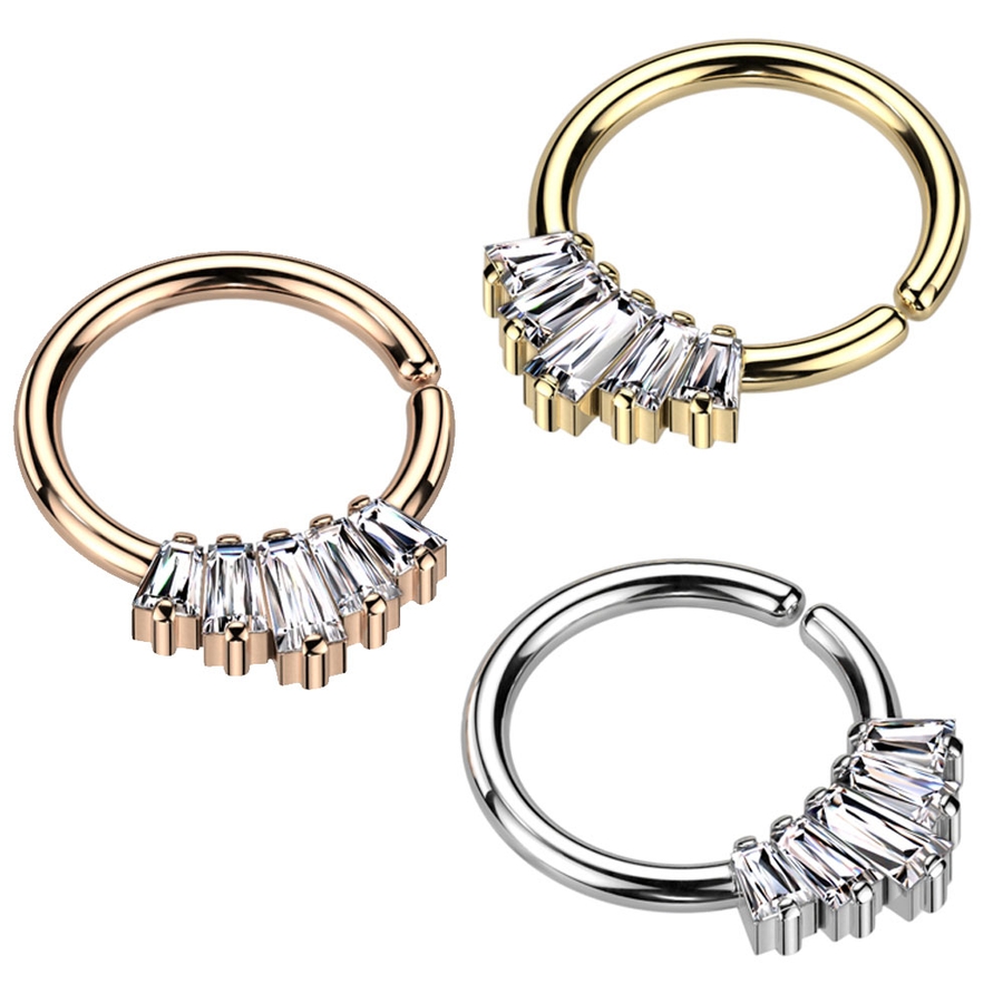 フロントジュエル ファン CZ ベンダブルフープリング ピアス 16G