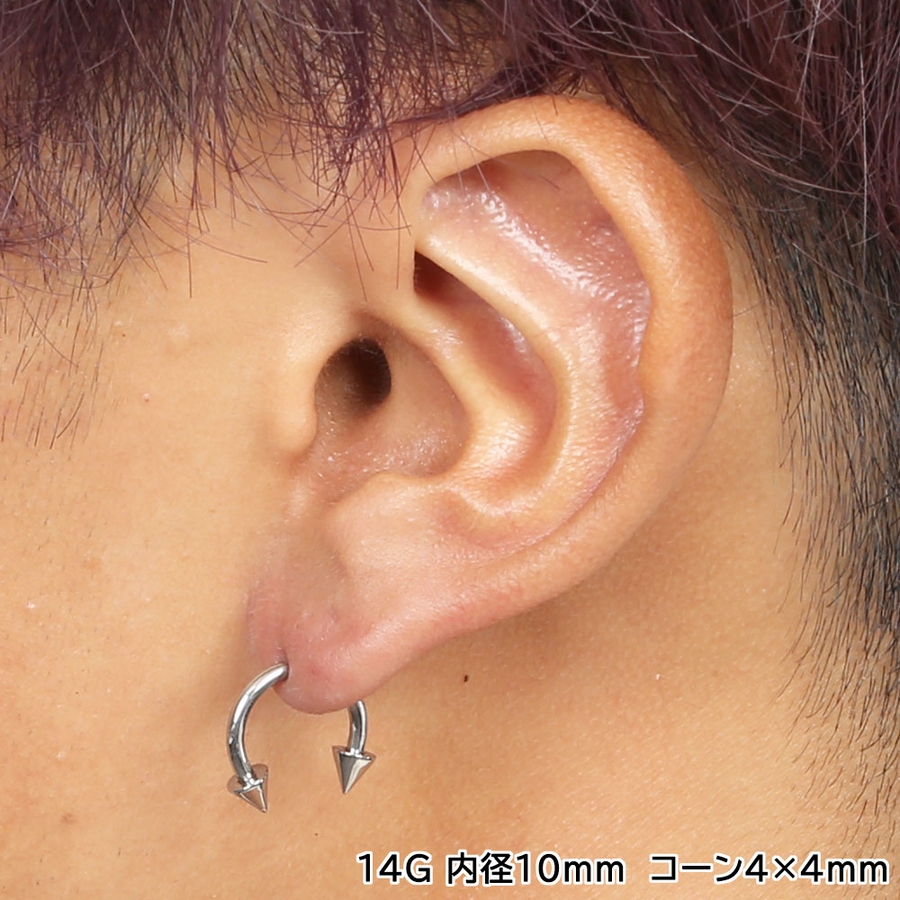 コーンのキャッチが個性的な、リング系ボディピアスの中でも人気のボディピアスです。