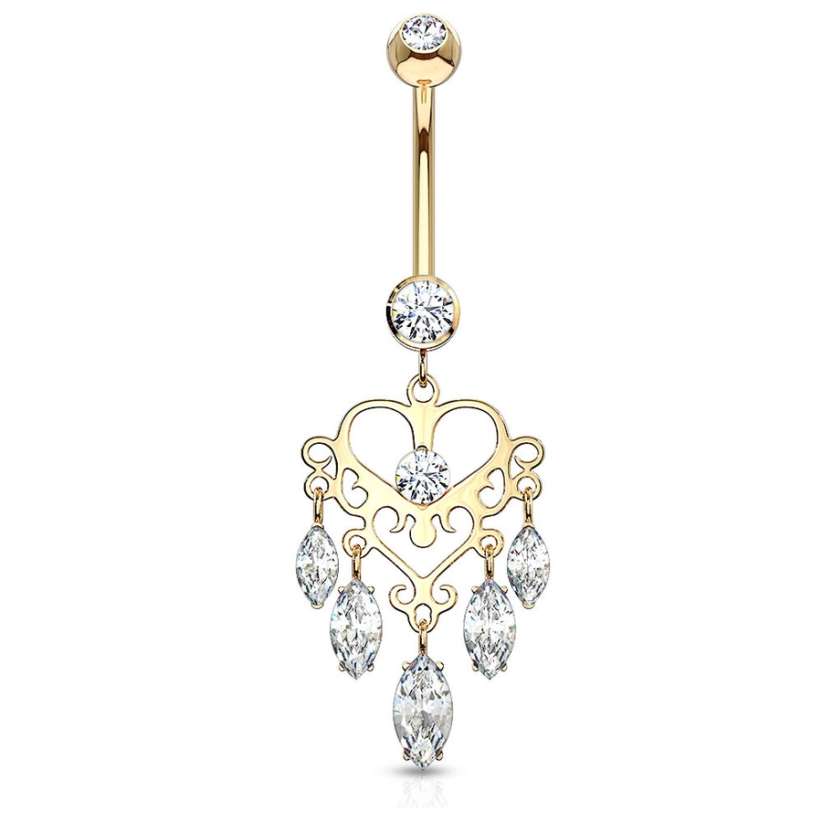 華やかなデザインのオープンハートモチーフがお洒落なへそピアス(バナナバーベル)。