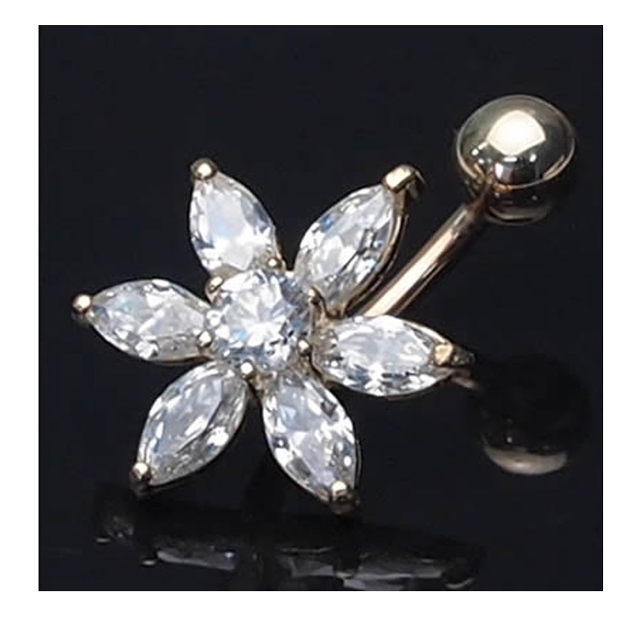 大きなジュエルフラワーが存在感抜群のへそピアス(バナナバーベル)。