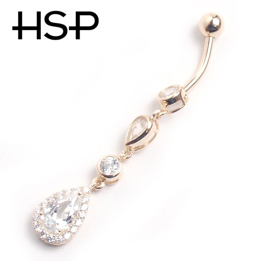 大きなティアドロップが揺れるお洒落なへそピアス(バナナバーベル)。