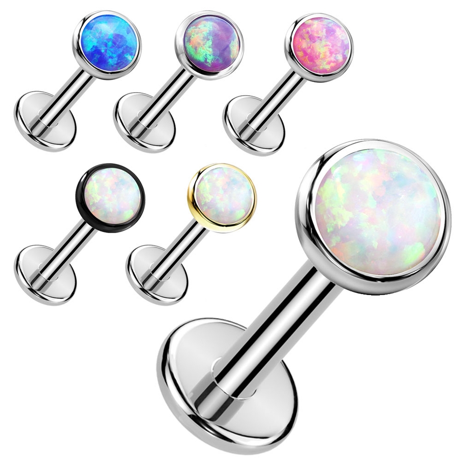 4mmシンセティックオパールフラットストーン ラブレットスタッド 14G