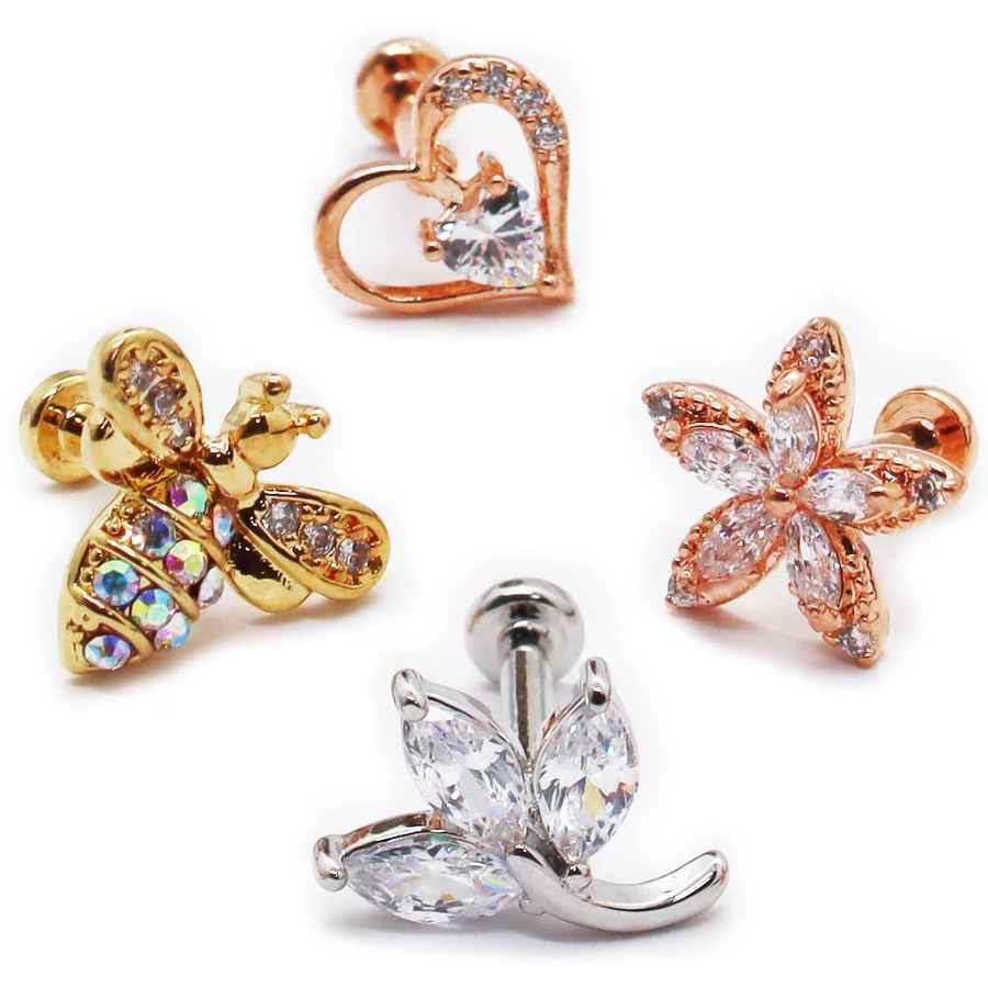 CZ バラエティ ジュエルチャーム インターナル ラブレットスタッド 16G
