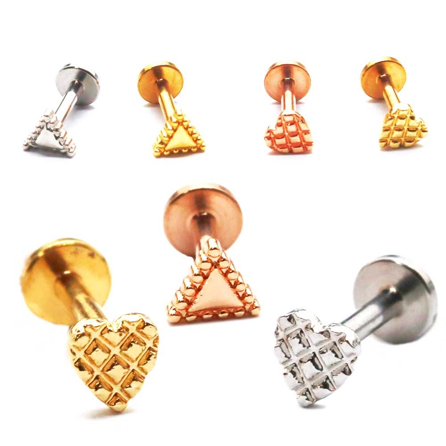 ビーズエッジ トライアングル & ダイヤモンドエンボス ハート インターナルラブレットスタッド 16G
