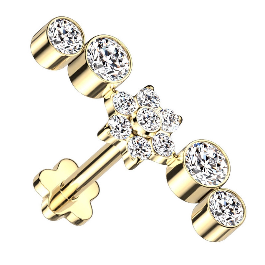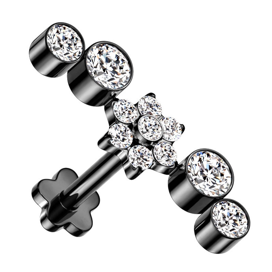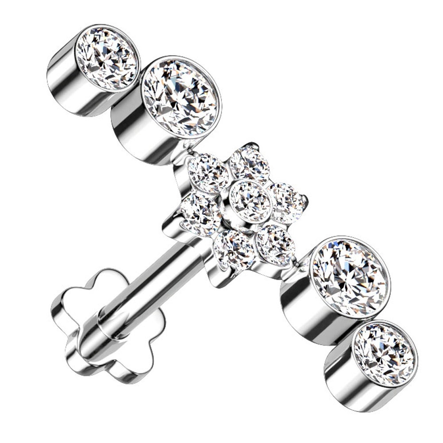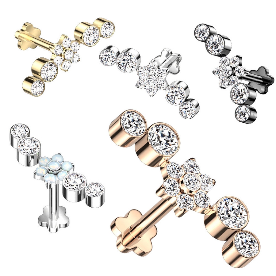 インプラントグレードチタン ジュエル フラワー インターナル ラブレットスタッド 16G