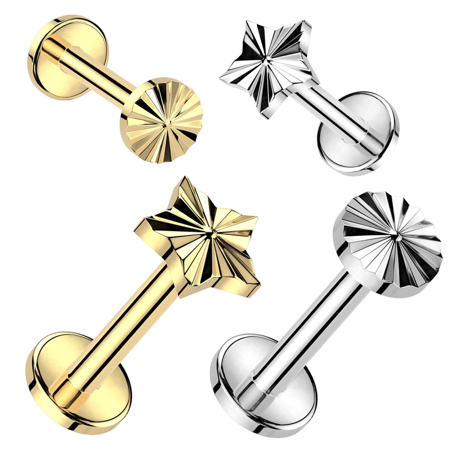 インプラントグレードチタン スター/ラウンド トップ インターナル ラブレットスタッド 16G