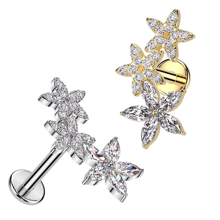 トリプルフラワー ジュエル プッシュ ラブレットスタッド 16G