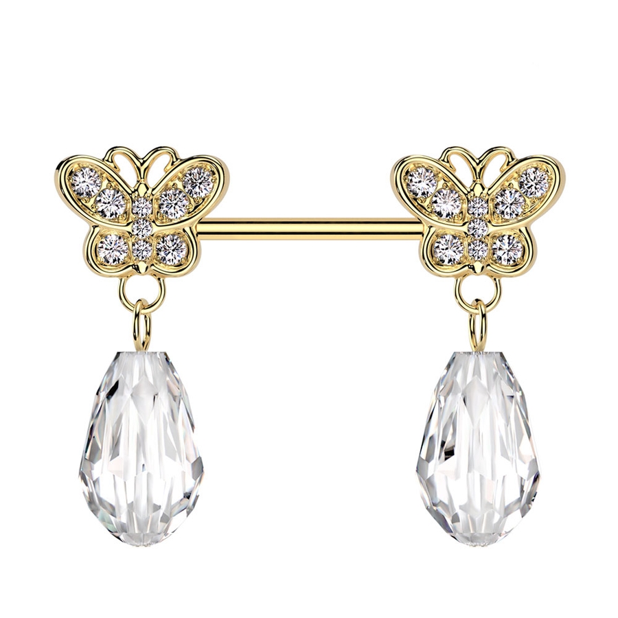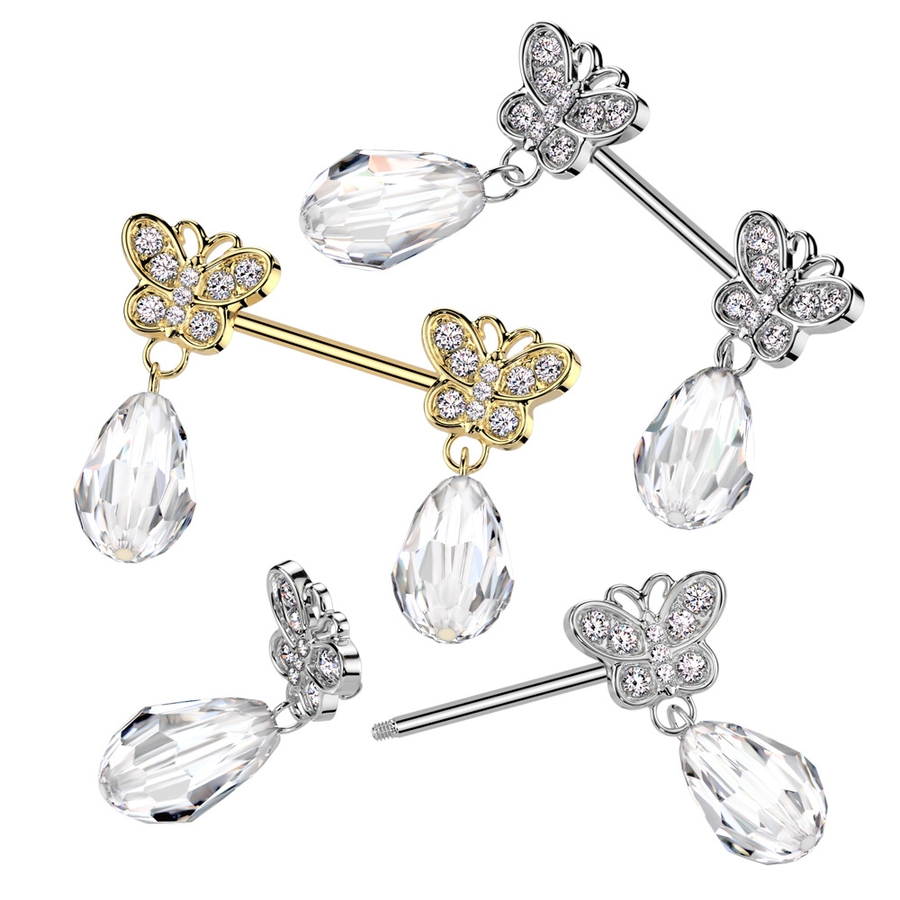 ニップル ピアス ジュエル バタフライ ジェムストーン ストレートバーベル 14G