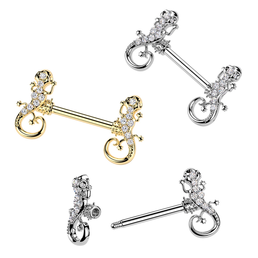 ニップル ピアス ジュエルトップ ゲッコー ストレートバーベル 14G