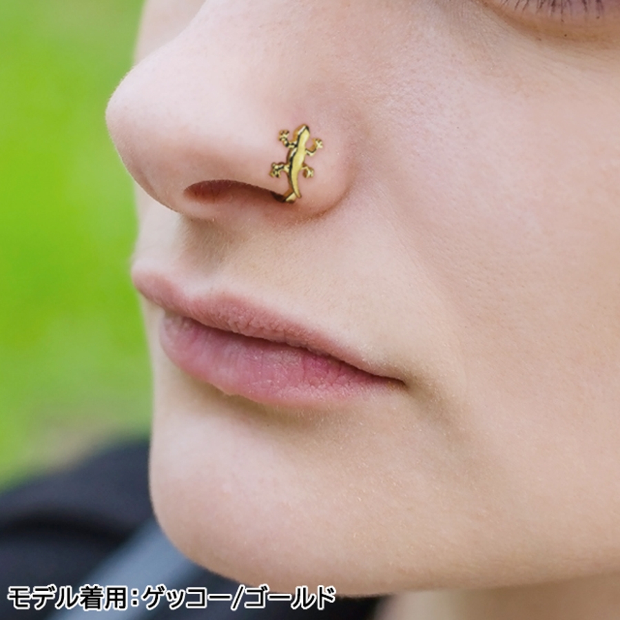 スネーク(蛇)とゲッコーのモチーフが目を引く鼻ピアス。